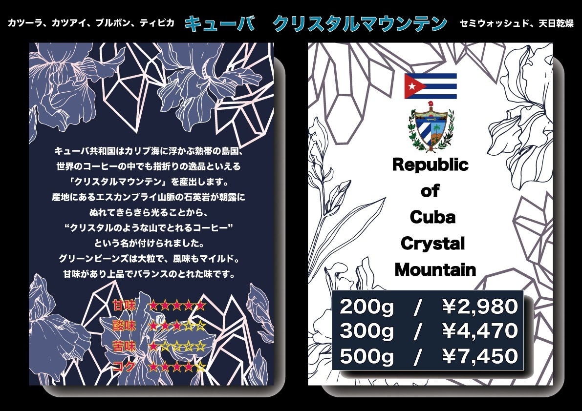 新商品取り扱いのおしらせ第二弾はキューバ クリスタルマウンテンです 日本しか手に入らない日本人向けの商品です。私の主観ですが、